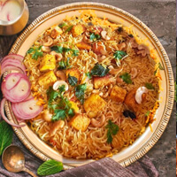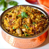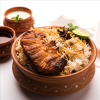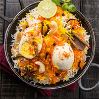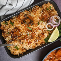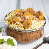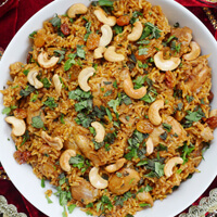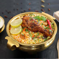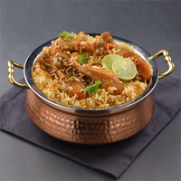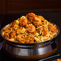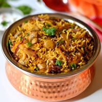 A delightful preparation of richly flavored aromatic rice layered with marinated chicken pieces in a delicate blend of whole spices.