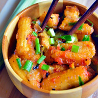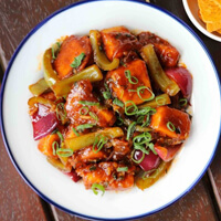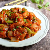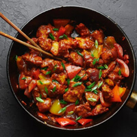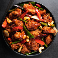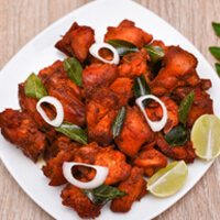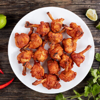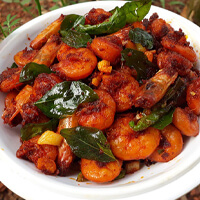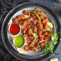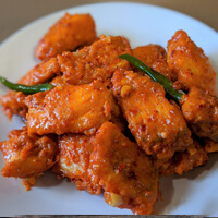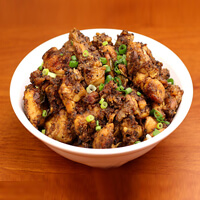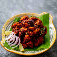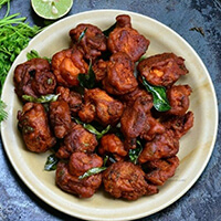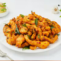 Marinated in a fiery blend of spices, then deep-fried for a crispy exterior. Served hot with curry leaves for a burst of flavor in every bite.