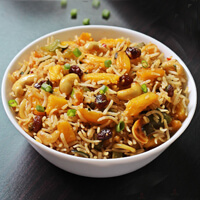 our menuTastefully marinated and succulent pieces of chicken cooked in a rich mix of long grain rice and dry fruits, delicately flavoured with authentic herbs, spices and saffron.